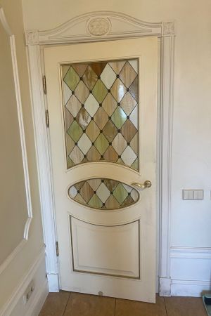 Все витражи в двери готовятся по Вашим индивидуальным размерам или шаблонам. Витражи для дверей могут красиво обыграть Вашу комнату, сделав ее сказочно загадочной. Так же наша компания делает монтаж и демонтаж витражей в двери.