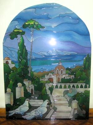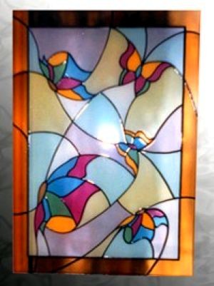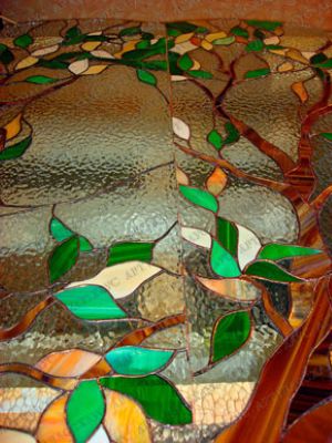 - Техника "Тиффани". Каждое стеклышко бережно обернуто медной фольгой и спаяно оловом, что позволяет создавать объемные, детализированные и невероятно красивые витражи любой сложности.