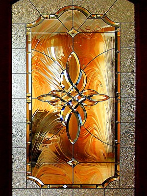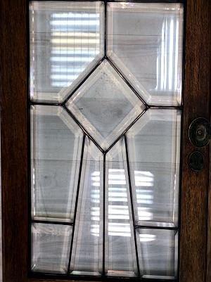 - Витраж с бевелсами. Пликлееные на стекло маленькие стекла с фацетами.