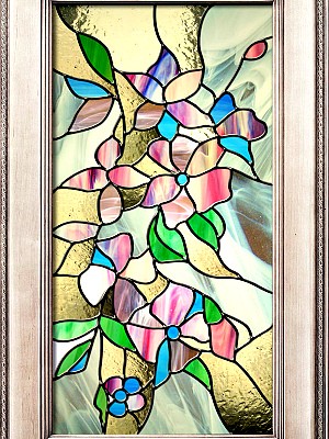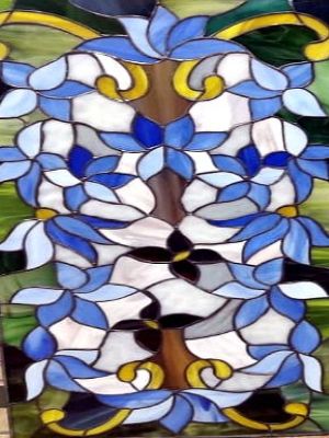 - Классический витраж (Тиффани). Сочетание сотен мельчайших кусочков цветного стекла, спаянных между собой свинцовым профилем.