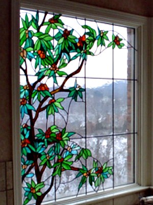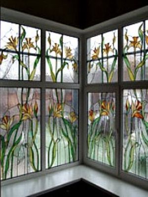 - Классический витраж (Тиффани). Изысканные, сложные композиции, собранные из множества мелких кусочков стекла, спаянных между собой.