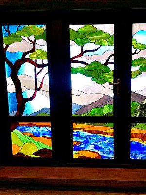 - Пленочный витраж с лентой. Упрощенный вариант классического витража, где вместо пайки используется специальная лента.
