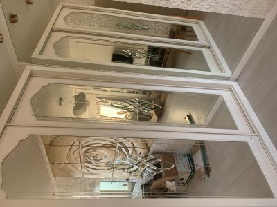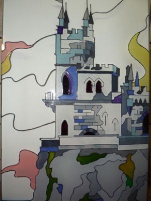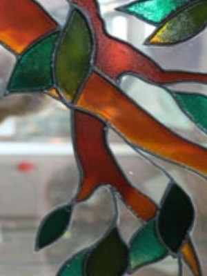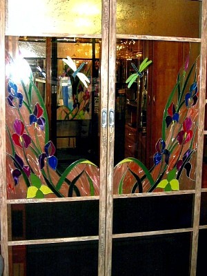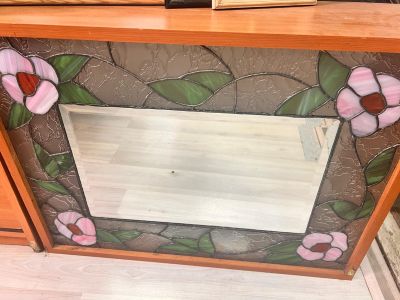 Витраж цветной на зеркале можно выполнить технологией пленочного витража или полимерного витража.