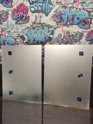 Одна из технологий применяемых нами: Склейка зеркала с зеркалом. Данная технология чаще носит декоративный характер , но иногда бывают случаи когда необходимо перекрыть старое зеркало со сложностью демонтажа, вот здесь на помощь приходит склейка зеркал. Новое зеркало изготавливается в размер старого или больше него и приклеивается сверху. |