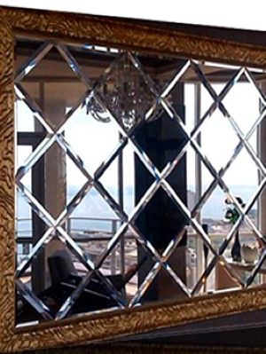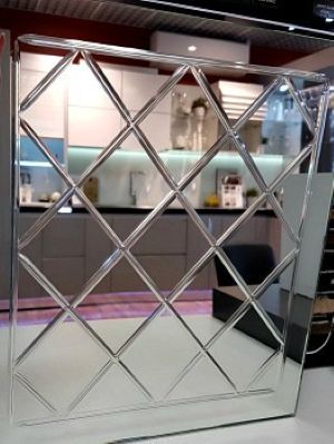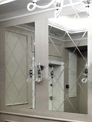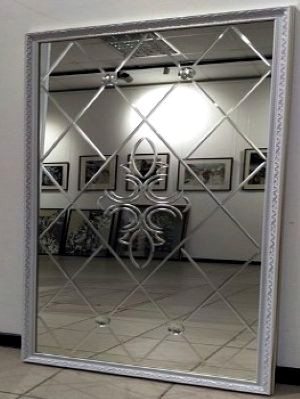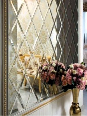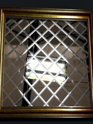 Рисунок алмазной грани на зеркале может быть как прямолинейным (квадратами, ромбами или линиями) так и фигурным (узорами, вензелями и цветами).