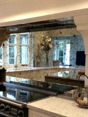 Одной из разновидностей зеркальных фартуков является фартук на кухню из состаренного зеркала. Состаренные "антикварные зеркала " не обязательно являются многовековым наследством.