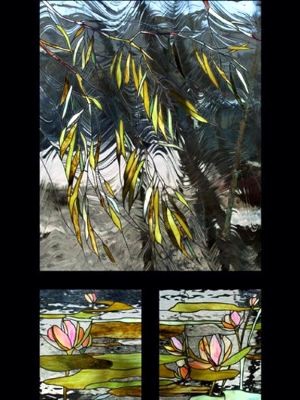 - Техника "Тиффани". Каждое стеклышко бережно обернуто медной фольгой и спаяно оловом, что позволяет создавать объемные, детализированные и невероятно красивые витражи любой сложности.