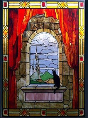 - Классический витраж (Тиффани). Соединение кусочков стекла с помощью медной фольги и пайки. Идеален для создания сложных узоров и реалистичных изображений.