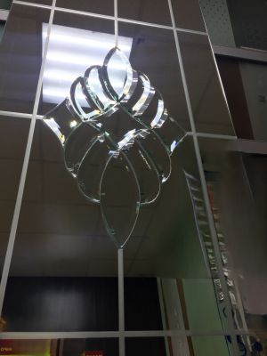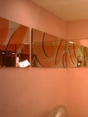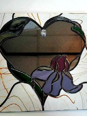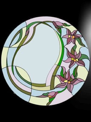 Витраж цветной на зеркале можно выполнить технологией пленочного витража или полимерного витража.