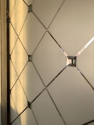 Одна из технологий применяемых нами: Склейка зеркала с зеркалом. Данная технология чаще носит декоративный характер , но иногда бывают случаи когда необходимо перекрыть старое зеркало со сложностью демонтажа, вот здесь на помощь приходит склейка зеркал. Новое зеркало изготавливается в размер старого или больше него и приклеивается сверху. |