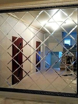 Рисунок алмазной грани на зеркале может быть как прямолинейным (квадратами, ромбами или линиями) так и фигурным (узорами, вензелями и цветами).